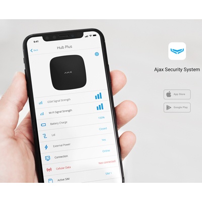 Ajax StarterKit Plus is designed for protection of homes, apartments, offices or commercial premises against intrusion. The kit consists of the Hub Plus intelligent control panel, MotionProtect motion detector, DoorProtect opening detector and SpaceControl key fob with panic button.