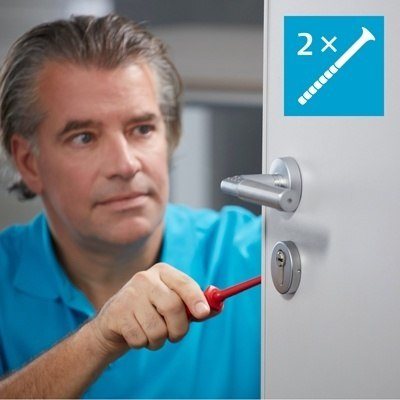 Upgrading doors is a snip, because Code Handle is easy to install and retrofit. It works together with your existing locking unit: keep the cylinder or lock and only change the handle to a battery-powered Code Handle. All it takes is two screws to fit a Code Handle to almost any interior door. No need to cable the door or connect it to the mains. No need to install a complex system.
