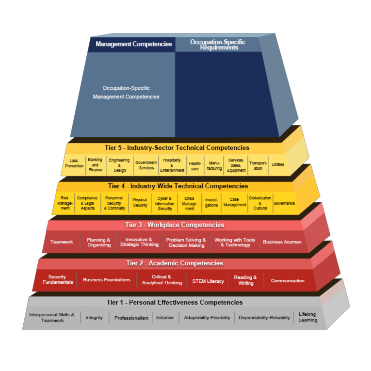 “Tiers 4 and 5 describe competencies related to entire industries and within specific industry sectors,” Florence says. “People spend their entire careers in one or another of the functions described in those two tiers.