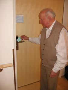 and offline components. Authorised staff or residents can enter or access cloakrooms, security safes, medicine cupboards, rooms with room safes, lifts or letterboxes. Details of who has access and the relevant authorisations of particular individuals are stored in the software and managed by administrators. Because this is done centrally, it involves minimal effort. The necessary data is written to personalised badges, printed with the retirement home‘s logo, in-house. When a badge is lost, authorisations are simply deleted in the system and a replacement badge is issued. This makes sure that the retirement home remains secure. If a badge is stolen or lost, the person who stole it or finds it cannot log in on the Pegasys 300 online terminal or the IF-600 and IF-71 online data acquisition devices in order to obtain access to the building and rooms.