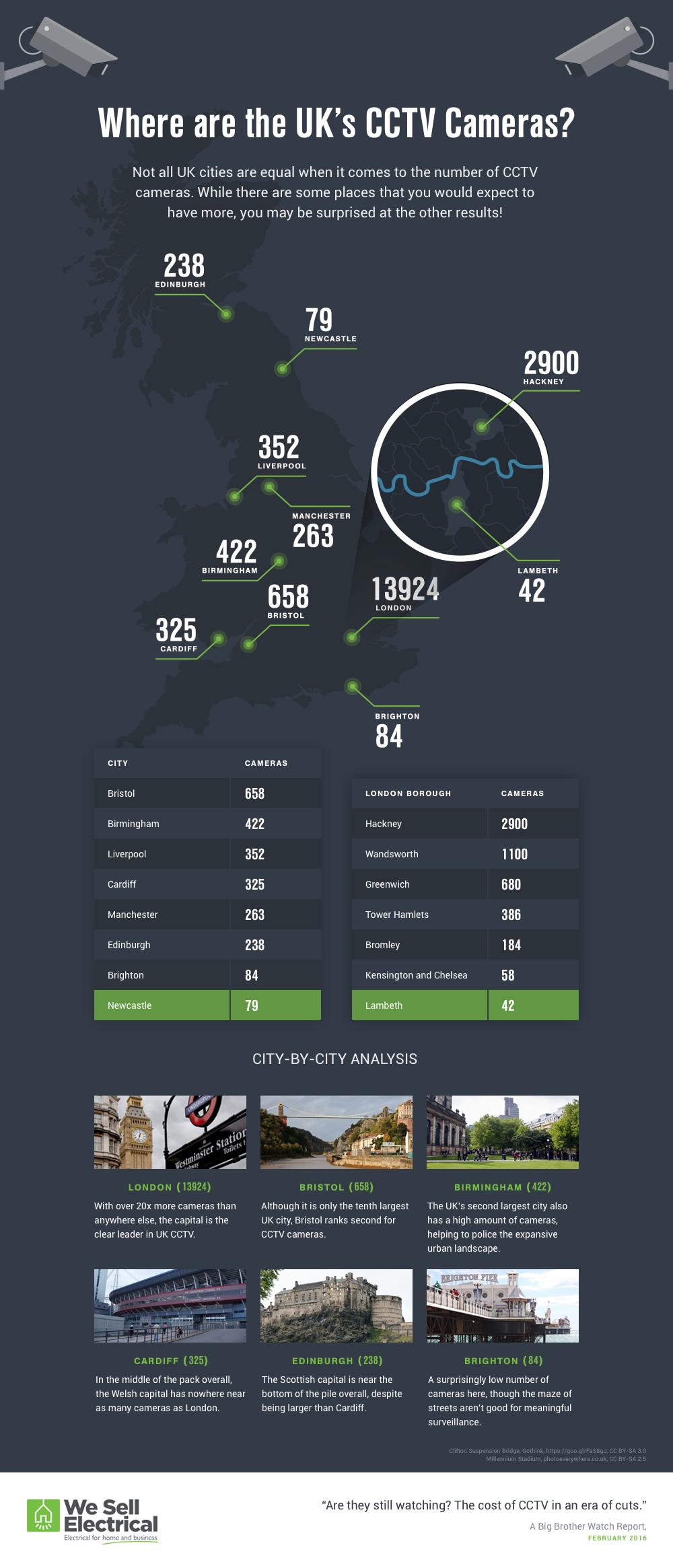 We Sell Electrical produced an infographic, showing the distribution of CCTV cameras across different city councils in the UK.