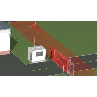 Analytics recognising moving object’s size, speed and distance from the unit 30x60m, customisable vertical or horizontal detection Built-in assistance camera, for easy installation and alarm event review up to 8 independent zones with configurable sensitivity, target size and output